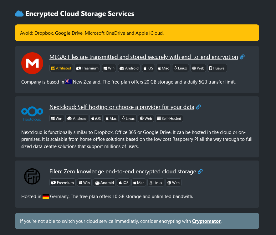 See: Encrypted Cloud Storage Services on PrivacyTools.io