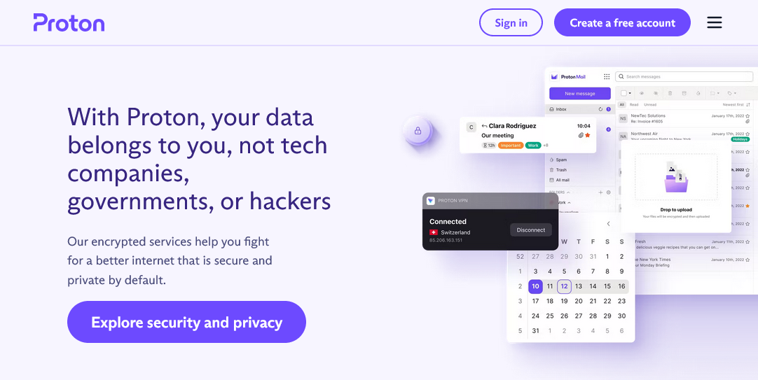 Proton started to offer users, who want to switch from Gmail, a complete package with their email and calendar solution. It is recommended to pick the Mail Plus or Proton Unlimited pricing model for you to access your emails via an email client/IMAP. You also receive more storage space, email aliases and multiple calendars.